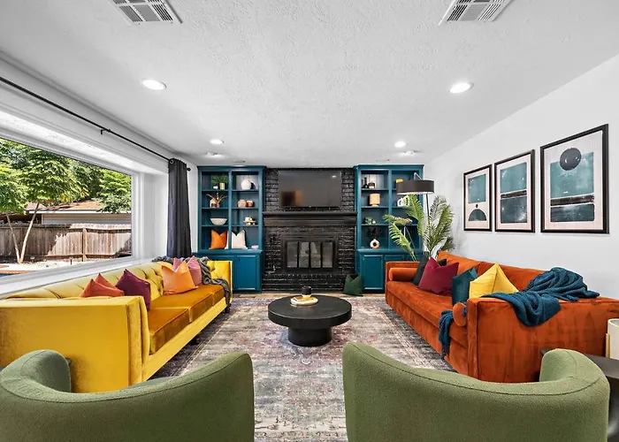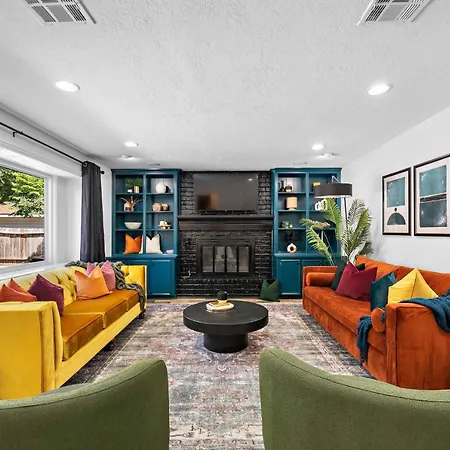 Villa The Pines I Sleeps 12 I Private Pool I Patio & Bbq de 130 m^2 se trouve à 30 minutes en voiture de l'aéroport intercontinental George Bush d'Houston.